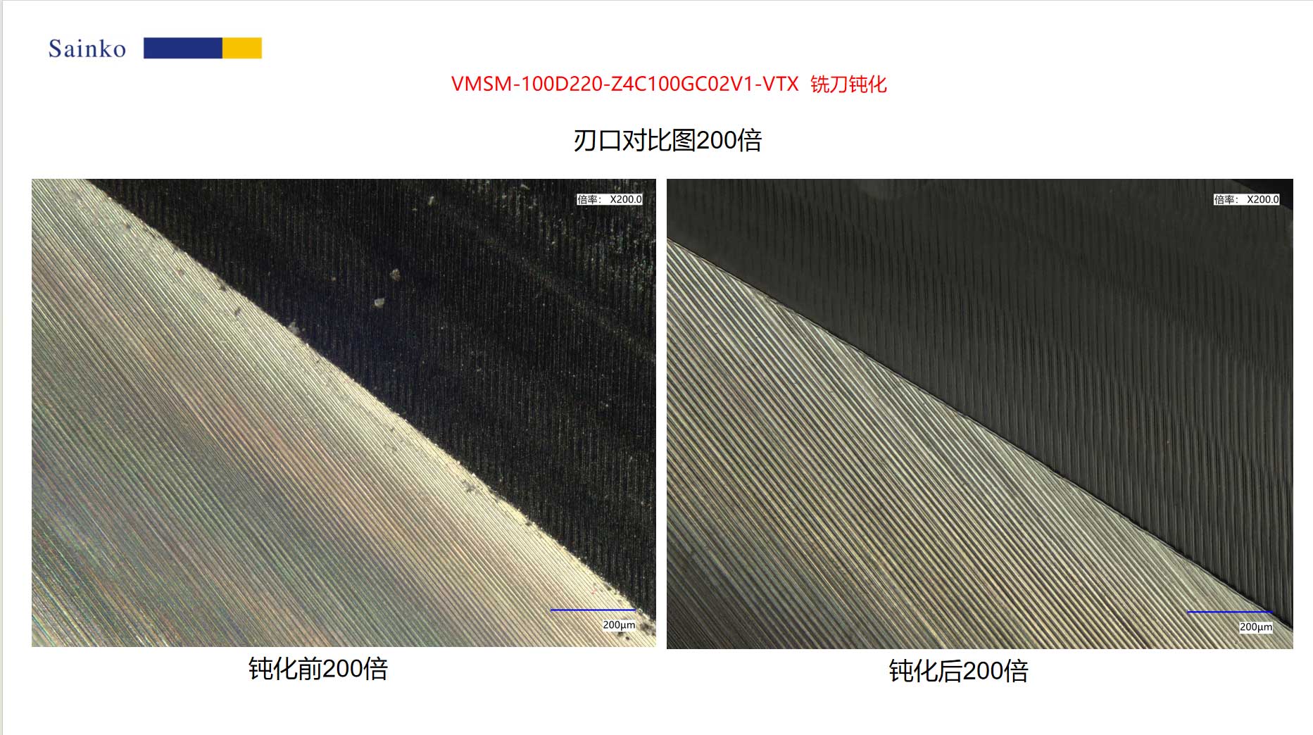 本次測試樣品為客戶提供的銑刀,型號為VMSM-100D220-Z4C100GC02V1-VTX,共計(jì) 3 件,核心需求為銑刀鈍化處理,且明確鈍化值需達(dá)到 7μm 標(biāo)準(zhǔn)。為精準(zhǔn)滿足需求,我司采用PL-24AX鈍化設(shè)備,并搭配15000-L型號磨料開展加工:通過設(shè)備對鈍化轉(zhuǎn)速、壓力等參數(shù)的精準(zhǔn)調(diào)控,結(jié)合磨料的精細(xì)研磨作用,終 3 件銑刀的鈍化值均穩(wěn)定達(dá)到 7μm 預(yù)設(shè)要求,同時(shí)消除了刃口原始存在的鋸齒與毛刺。經(jīng)后續(xù)驗(yàn)證,鈍化后的銑刀在切削加工過程中,不僅能顯著提高加工產(chǎn)品的表面質(zhì)量,還優(yōu)化了切屑排出效果,有效減少切屑堆積、劃傷工件的問題,具體測試結(jié)果詳見本報(bào)告。